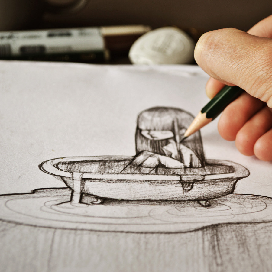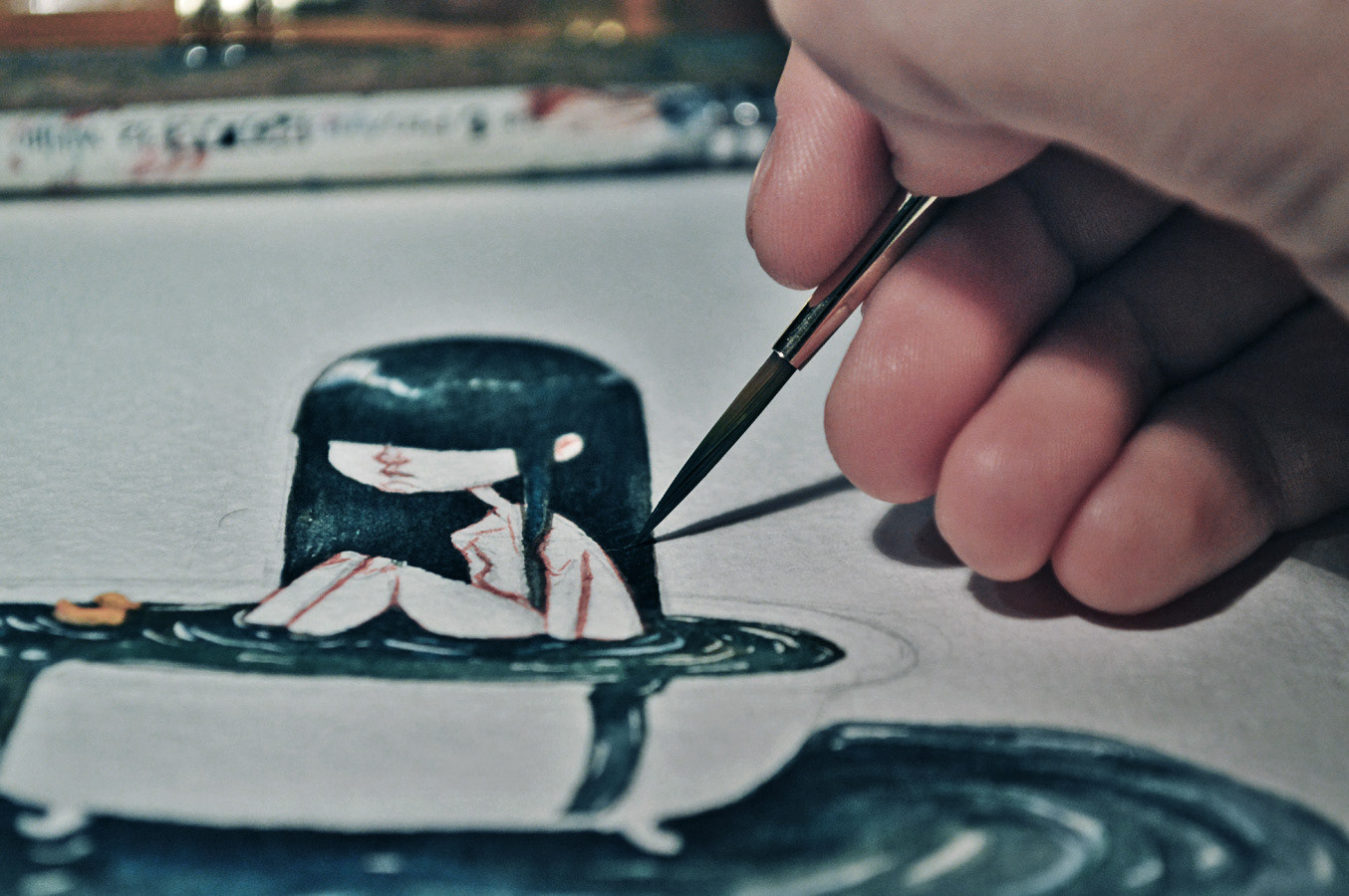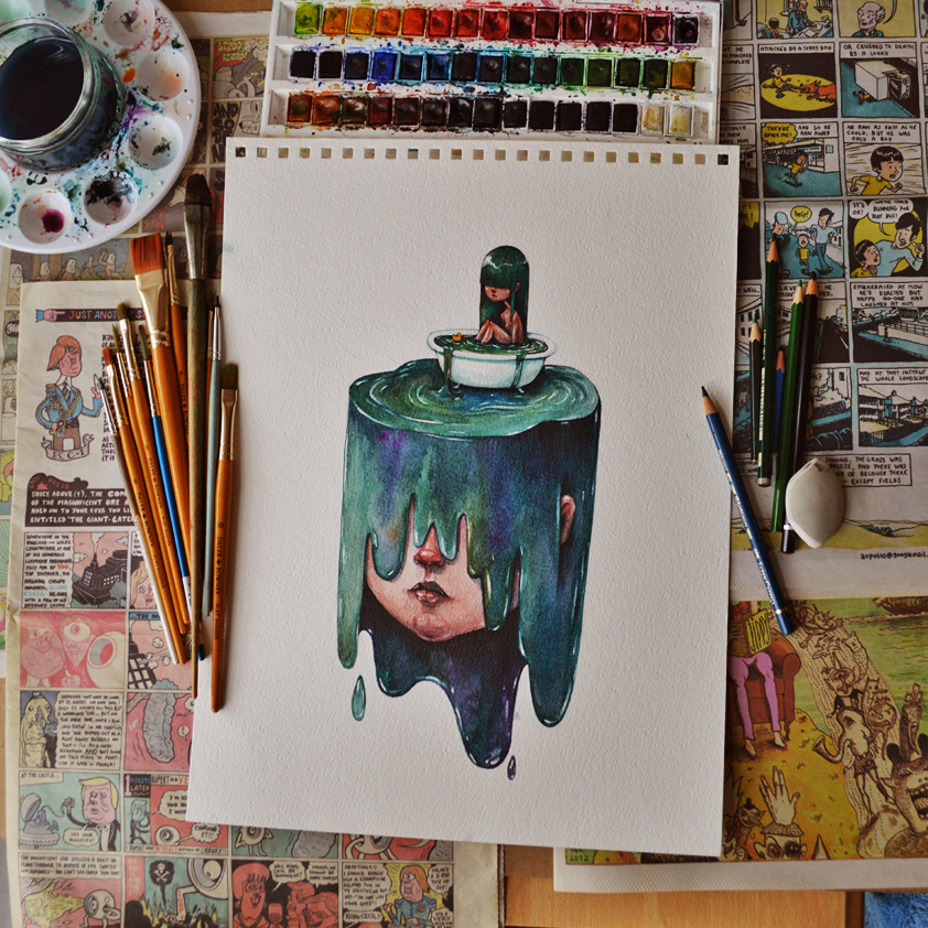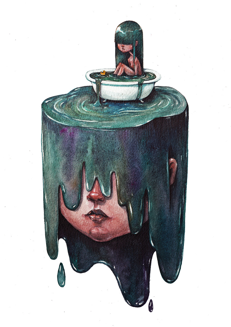 A quick A3 format watercolor painting from last night. Girls in tubs on tub-like girls.