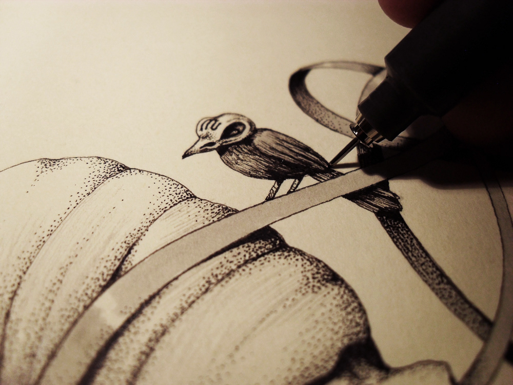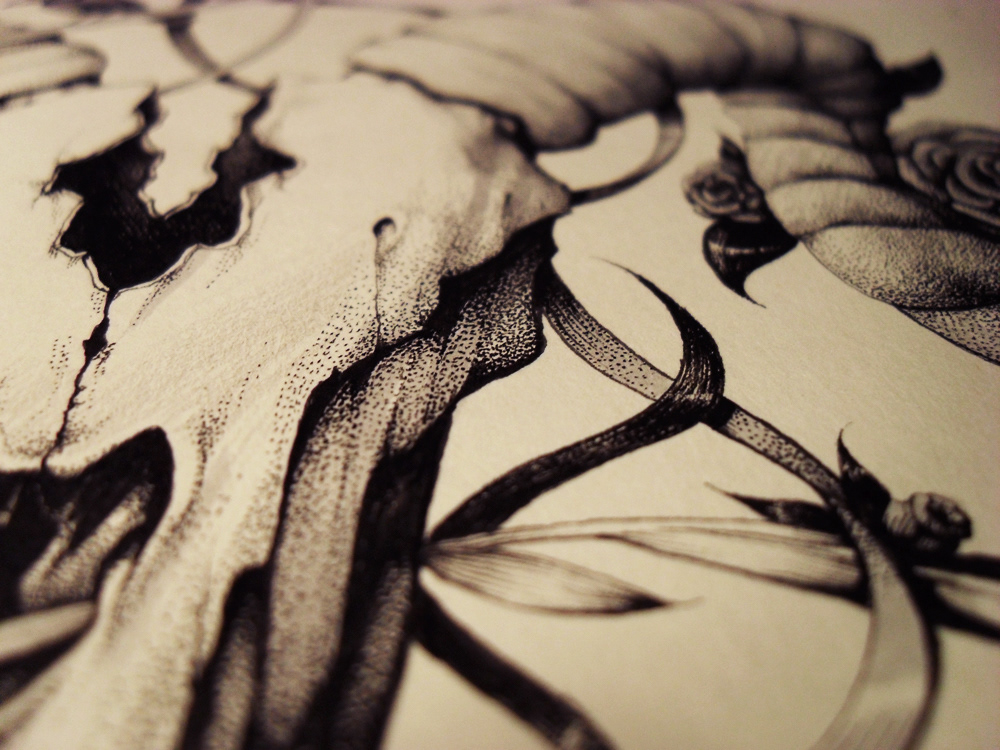 A drawing of the skull that took a while. It's only A4 but using mostly 0.03 and 0.05 mm black ink pens requires loads os time and patience (is also a really satisfying process). A little bit of 4H pencil and grey Tombow marker have been used as well.