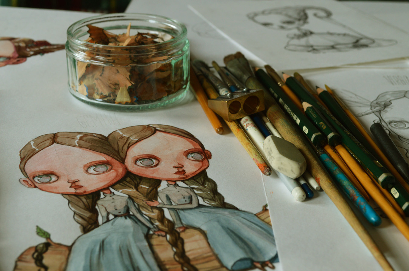 I think that Cancer is the one I enjoyed painting the most. I researched crabs and apparently they have teeth in their stomach, amazing. Just HAD to give this feature to the zodiac cancer girl. Another thing to mention is that all the backgrounds were painted as well (apart from the Leo one, that one was stolenandedited because I was about to give up at the end).